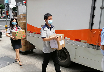 嘉诚国际积极响应广州市工商联号召,第一时间筹备物资,捐赠了饮用水、帐篷、太阳伞、小雨伞等一批保障物资,于5月31日下午奔赴现场,为越秀区部分核酸检测点送去保障物资,协助医护人员和志愿者共同战疫,全力支援广州疫情防控工作。