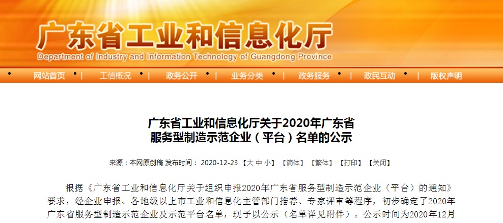 2020年12月23日,广东省工业和信息化厅发布《广东省工业和信息化厅关于2020年广东省服务型制造示范企业(平台)名单的公示》,嘉诚国际的“制造业与物流业联动的全程供应链一体化管理综合服务平台”获评为“2020年广东省服务型制造示范平台”!