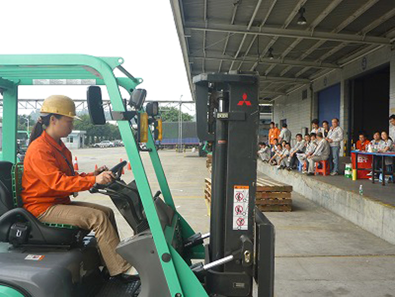 为进一步加强叉车司机安全、高效作业,提高出货效率,2011年11月30日广州市嘉诚国际物流股份有限公司就本年度叉车日常作业中的环节问题点,设立项目展开叉车技能比赛,来自6个业务部门的叉车司机人员,近二十多名选手参加了本次比赛。