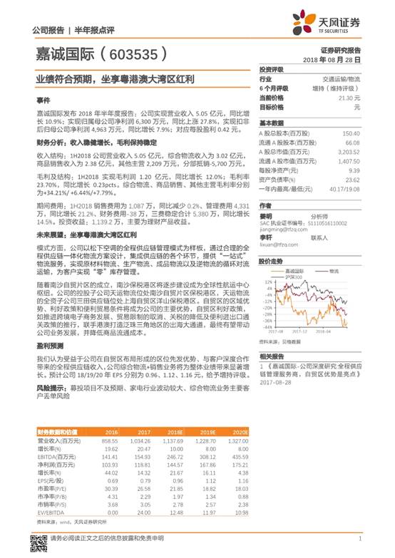 嘉诚国际:业绩符合预期,坐享粤港澳大湾区红利