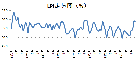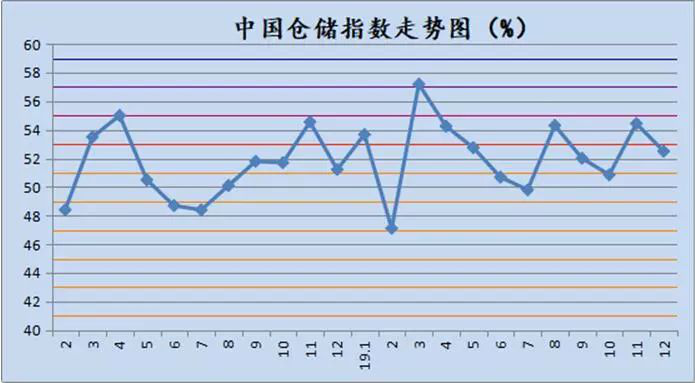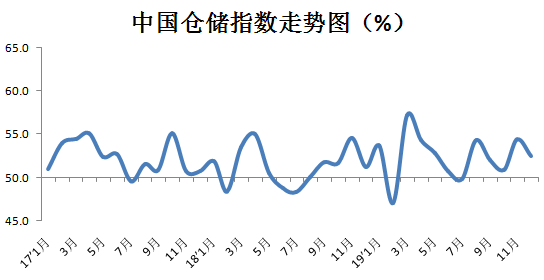 中国物流与采购联合会发布的2019年12月份中国物流业景气指数为58.6%较上月回落0.3个百分点;中国仓储指数为52.5%,较上月回落1.9个百分点。
