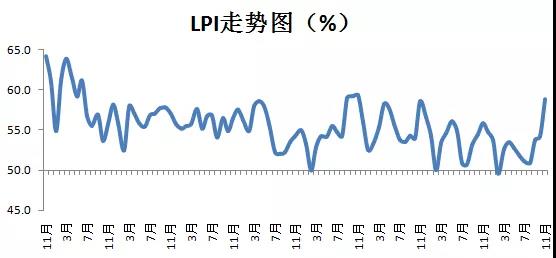 中国物流与采购联合会发布的2019年11月份中国物流业景气指数为58.9%较上月回升4.7个百分点;中国仓储指数为54.4%,较上月回升3.5个百分点。