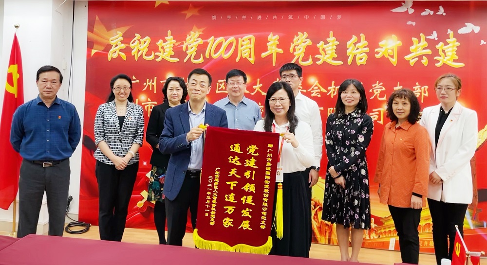 △越秀区人大常委会机关党支部向嘉诚国际党支部赠送锦旗