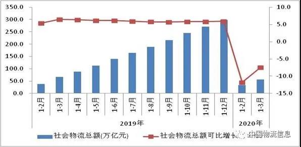 2019-2020年社会物流总额及增长情况